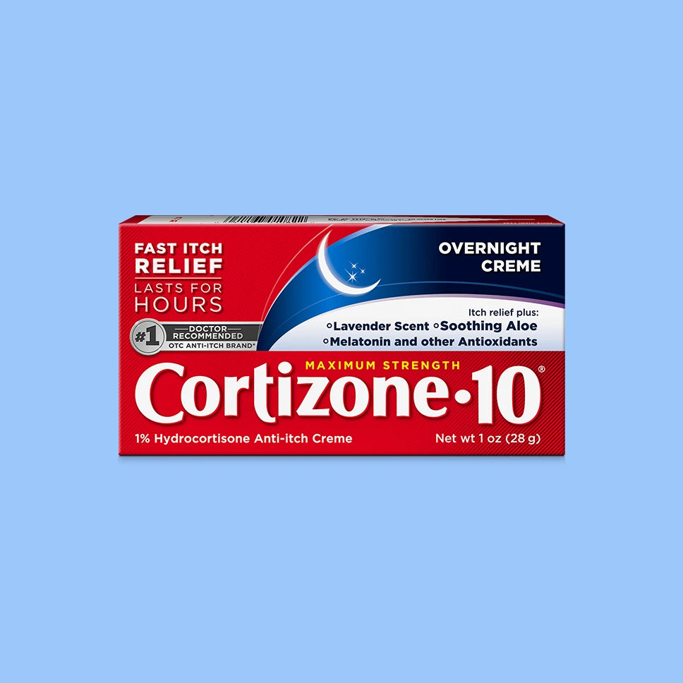 Help relieve itch with Cortizone-10® Maximum Strength 1% Hydrocortisone Itch Relief Overnight Cream. Get lasting relief for itch associated with inflammation, eczema, psoriasis, rashes due to insect bites, poison ivy, poison oak, poison sumac, and minor skin irritations like rough, dry, red, chafed, and chapped skin.