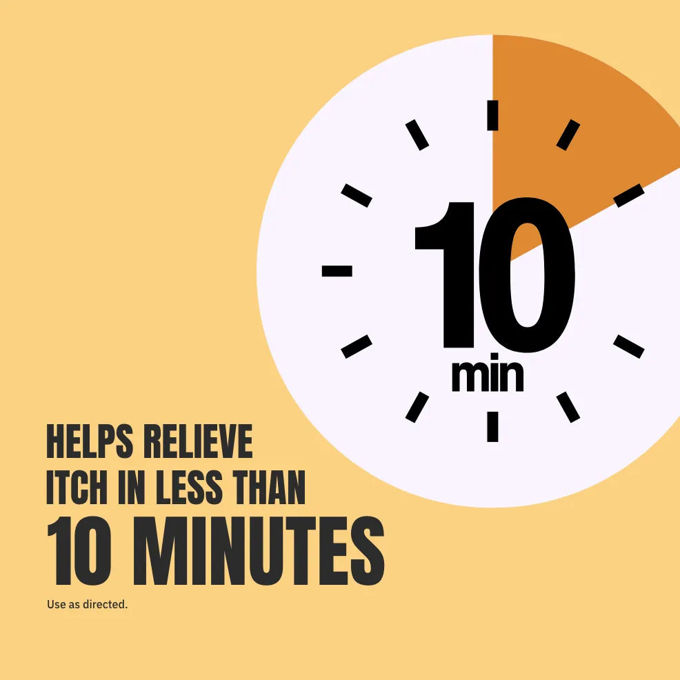 Water-resistant itch relief formula that works fast and lasts for hours.