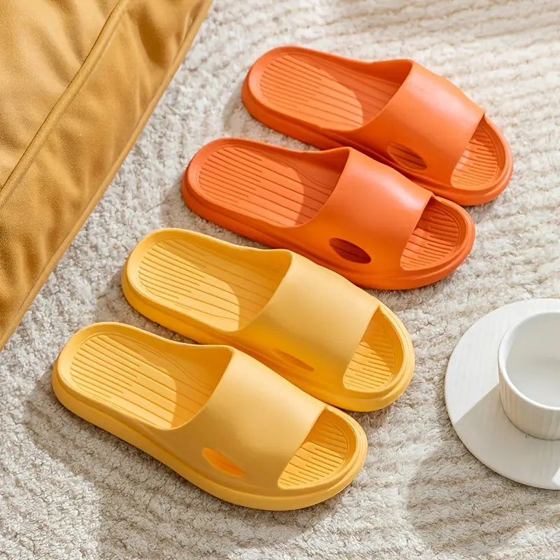 Lightweight, Non-Slip Indoor/Outdoor Slide Sandals in Yellow, Orange, And Black for Home, Bathroom, And Spa Use, Indoor Slippers