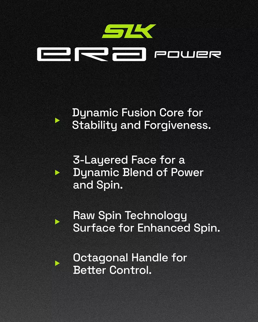 - Dynamic Fusion Core for Stability and Forgiveness: A low-density EVA foam perimeter with composite edge reinforcements encapsulates the polypropylene honeycomb core, forming a fusion core. By distributing mass towards the edges, the ERA Power's construction increases the paddle's stability — resulting in a more forgiving sweet spot for off-center contact. This Dynamic Fusion Core is engineered to give you power on your attacks with a large sweet spot you can trust